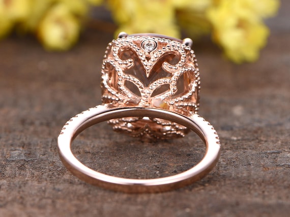 Bague De Fiancailles En Gros Morganite Rose Diamant Or Deco Gravure Florale Promesse Nuptiale Bague Diamant 4 4ctw Naturel Morganite Bague