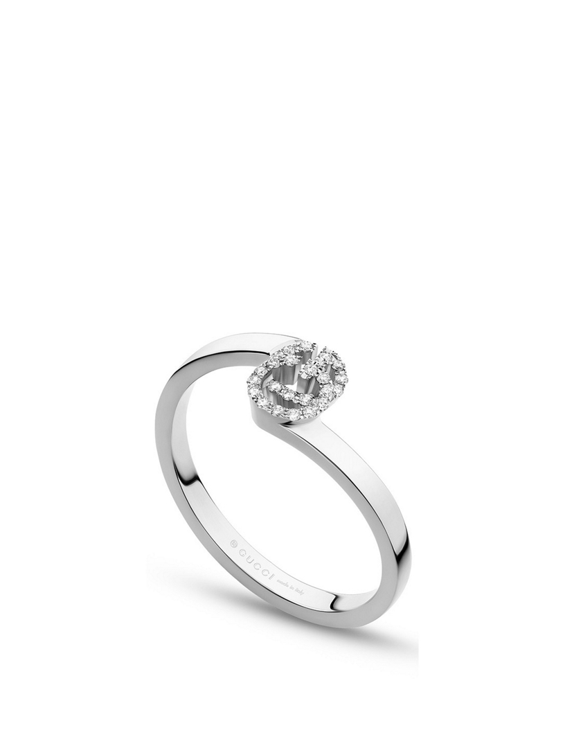 Gucci Bague Gg Running En Or Blanc 18 Ct Sertie De Diamants