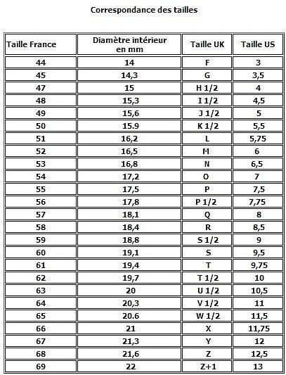 Tableau De Correspondance Des Tailles De Bagues Bijoux