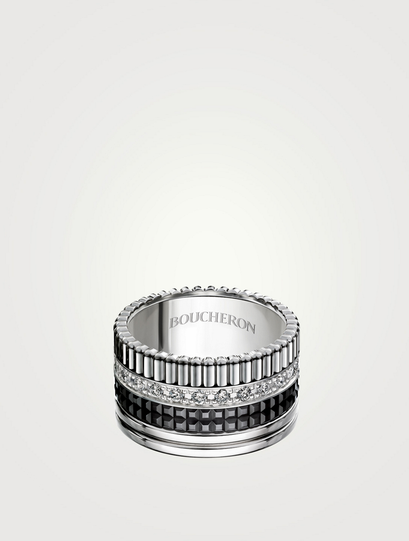 Boucheron Large Bague Quatre Black Edition En Or Blanc Ornee