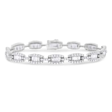 Round And Baguette Diamond Bracelet In Platinum 9 Ct Tw
